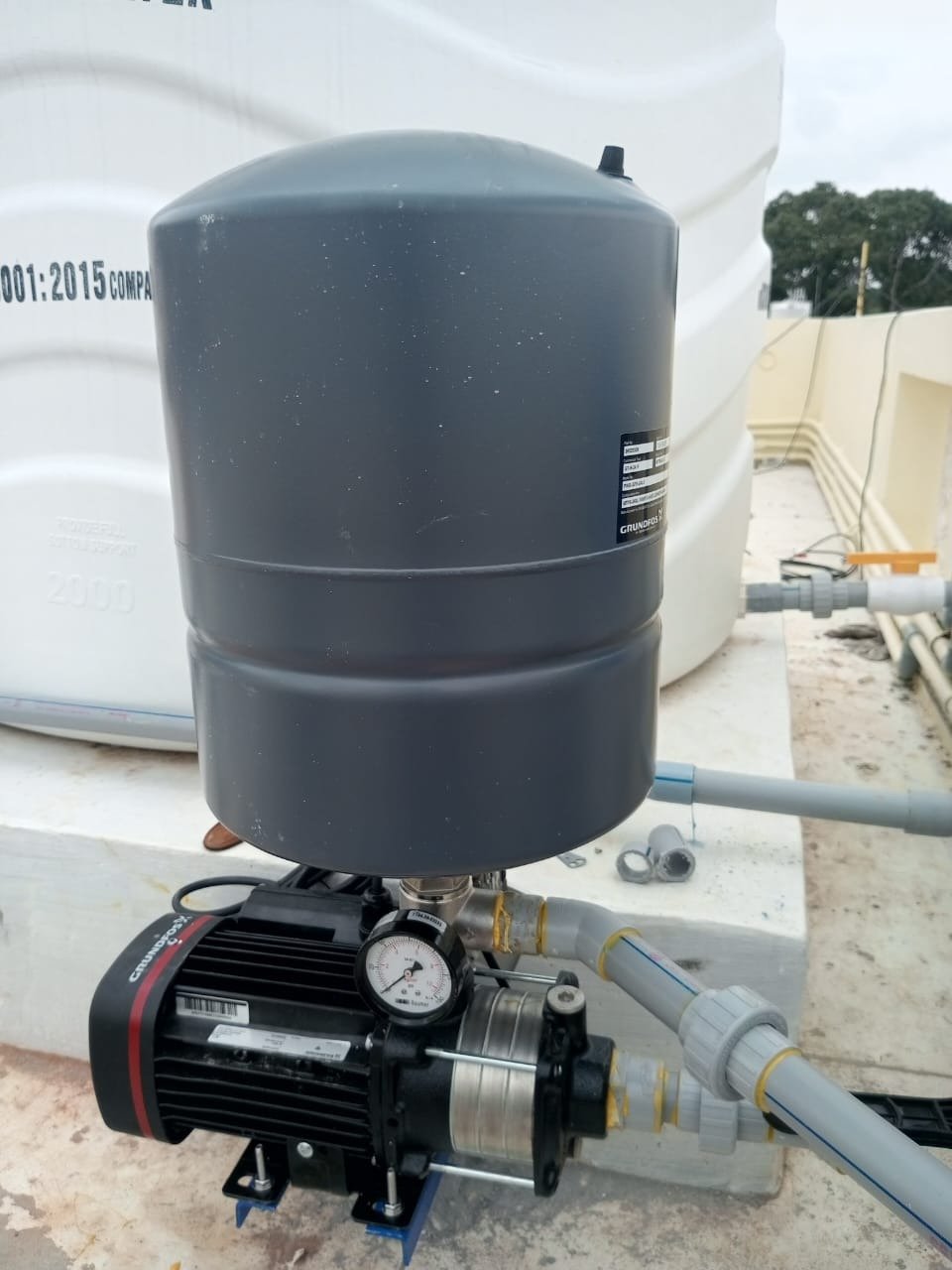 The CM pump with Pressure Manager is used for constant water pressure. It is ideal when the space is constraint near theoverhead tank. It also has dry running protection, in case of no water in the pipeline.