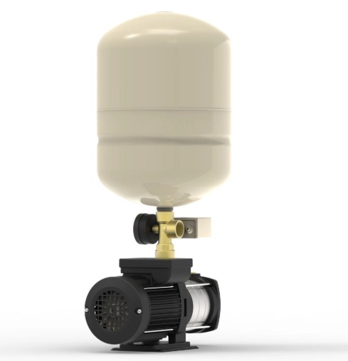 CM pump is supplied with pressure tank for constant water pressure. When the pressure drops to the pre-set level, thepump will start-up and when the water consumption drops again, the outlet pressure will rise to a pre-set pressure afterwhich the pump will stop. Available from 24 lts to 100 lts tank range.